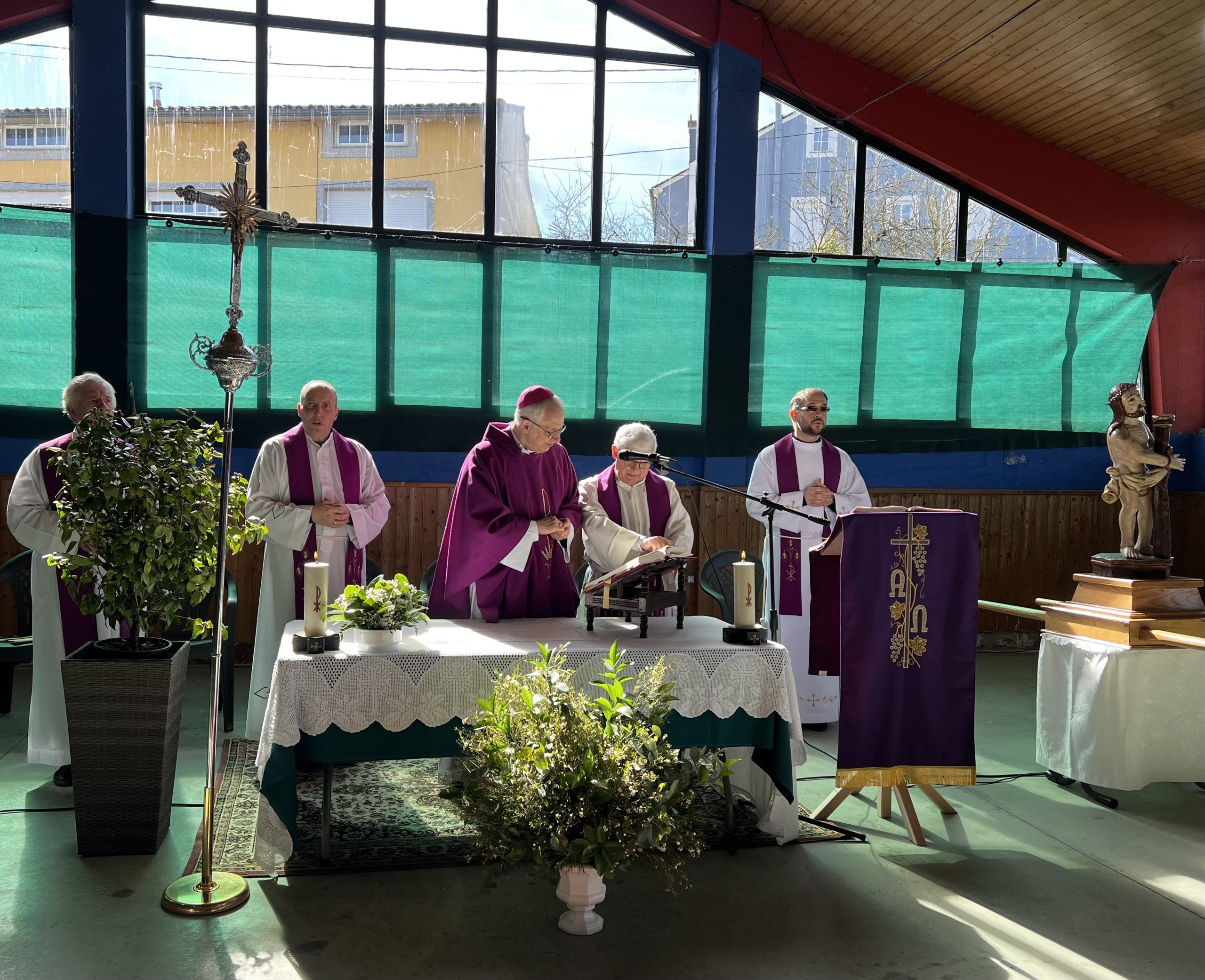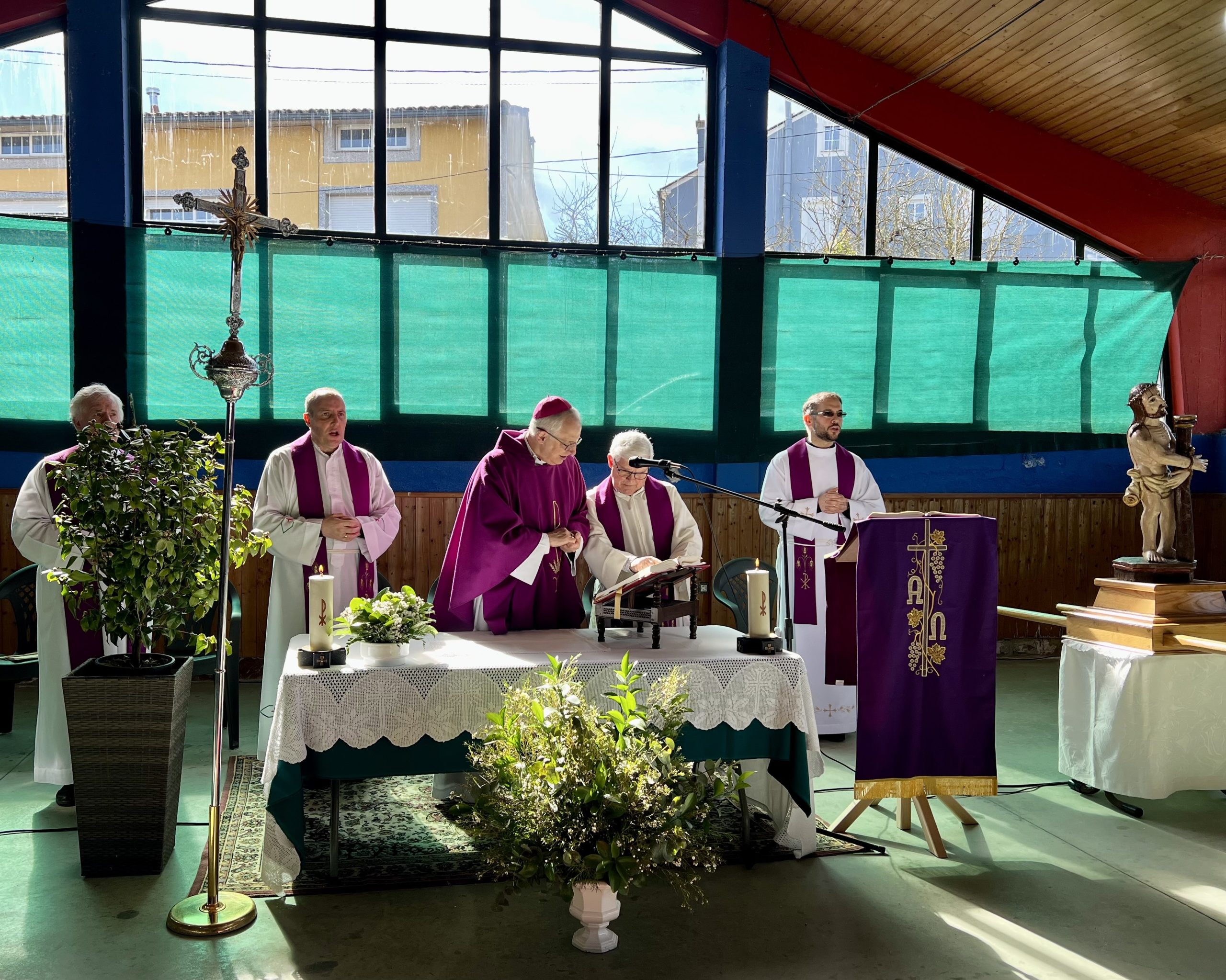 A las 12:00 horas se celebró la Eucaristía, presidida por el obispo de Lugo, Mons. Alfonso Carrasco Rouco, obispo de Lugo, y concelebraron los sacerdotes de la zona: José Miguel Vázquez López, José Luis González Regueiro y Julio Fernández Doval.