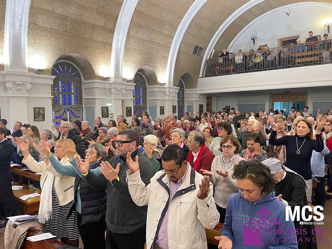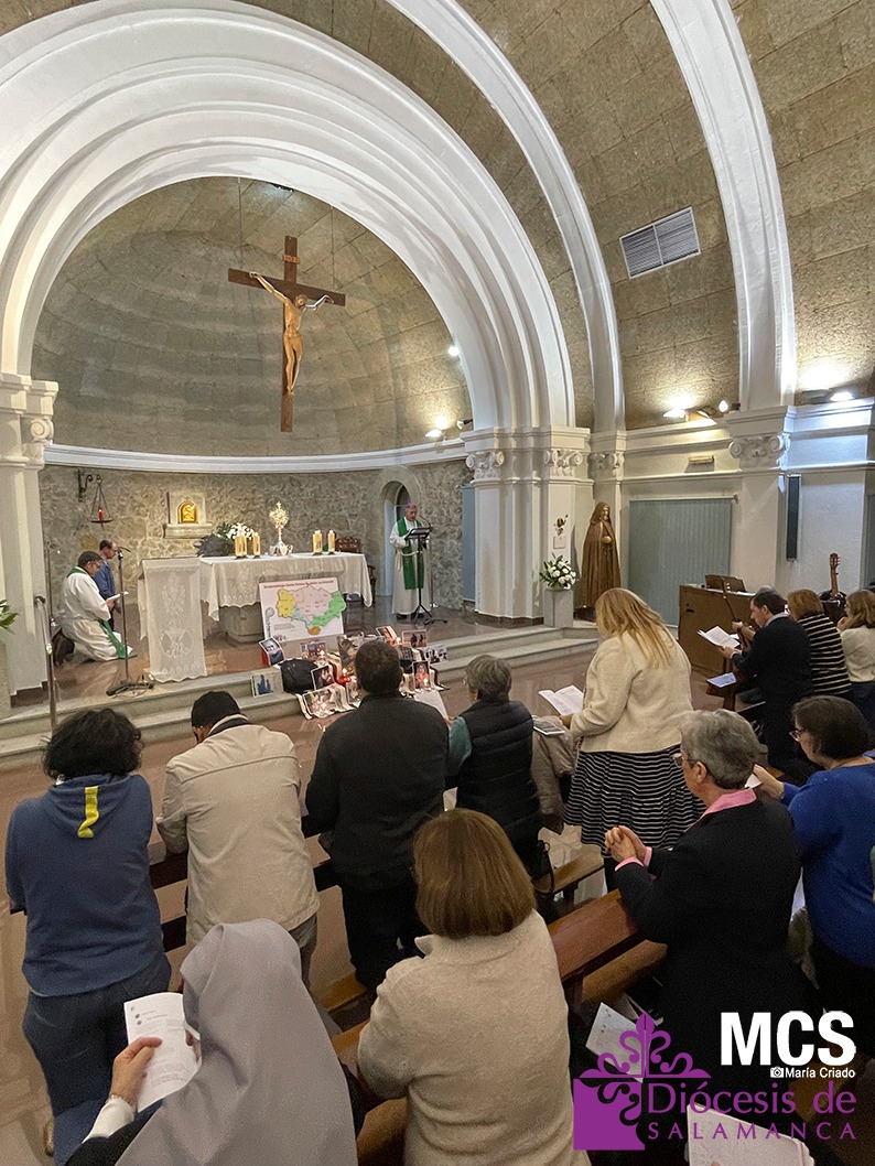 En el marco del Jubileo ordinario 2025, la oración organizada por el Consejo Pastoral del Arciprestazgo de Santa Teresa–La Armuña, con materiales elaborados por la Delegación Episcopal para una Iglesia Samaritana y de la Caridad y Cáritas Diocesana, reunió a responsables, técnicos y voluntarios de diversos ámbitos eclesiales que acompañan cada día a personas en situación de vulnerabilidad, junto a fieles de distintas parroquias, asociaciones, movimientos y delegaciones. La celebración fue presidida por el obispo de Salamanca, Mons. José Luis Retana, acompañado por el vicario de pastoral, Andrés González, y el arcipreste Fernando García, y animada por el coro parroquial de Villamayor.